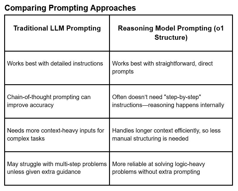 Here’s how traditional LLMs and reasoning models compare when it comes to prompting: